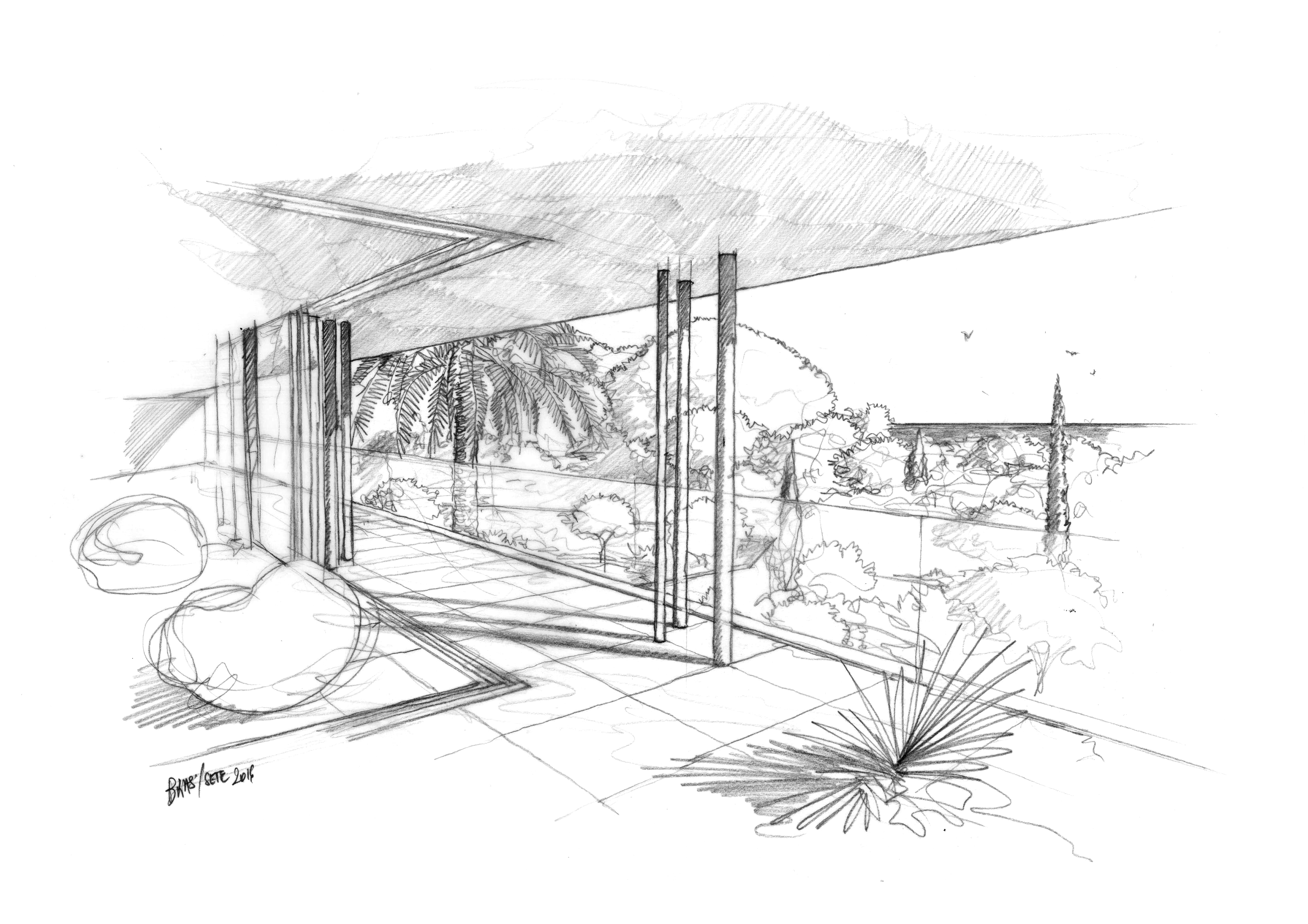 Un palmier, un cyprès, un cèdre s’affichent au premier plan de la vue